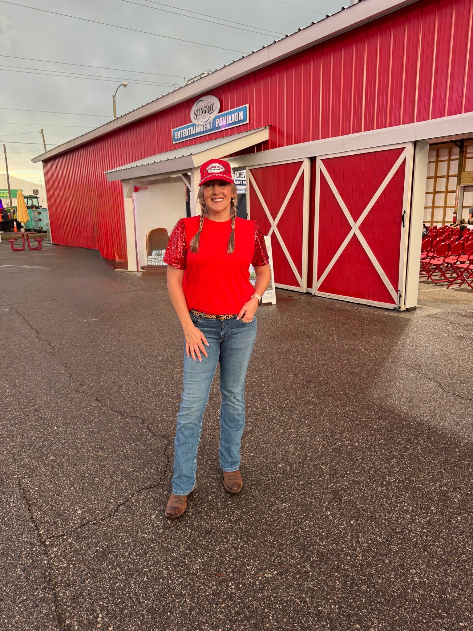 This is one of our favorite tops and for good reason! She’s comfortable, soft, and fits well! This is the perfect top for all the holidays that need a touch of red sequins (4th of July, Christmas, Valentine’s Day, and the Florida Strawberry Festival)!